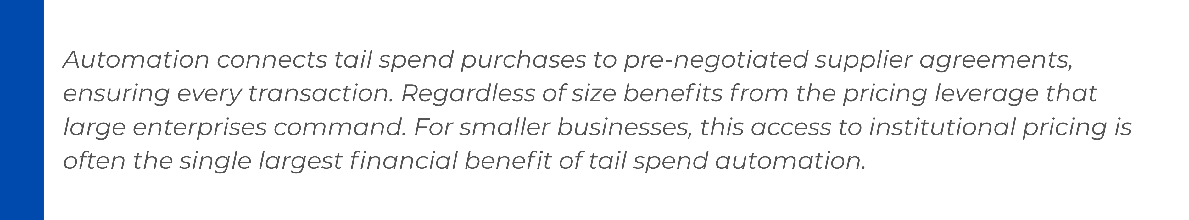 Tail spend might represent a smaller portion of overall expenditure, but it still represents money. Organizations that automate this category consistently unlock savings that would otherwise remain invisible not through dramatic renegotiations, but through volume aggregation, price benchmarking, and pre-negotiated supplier arrangements.
