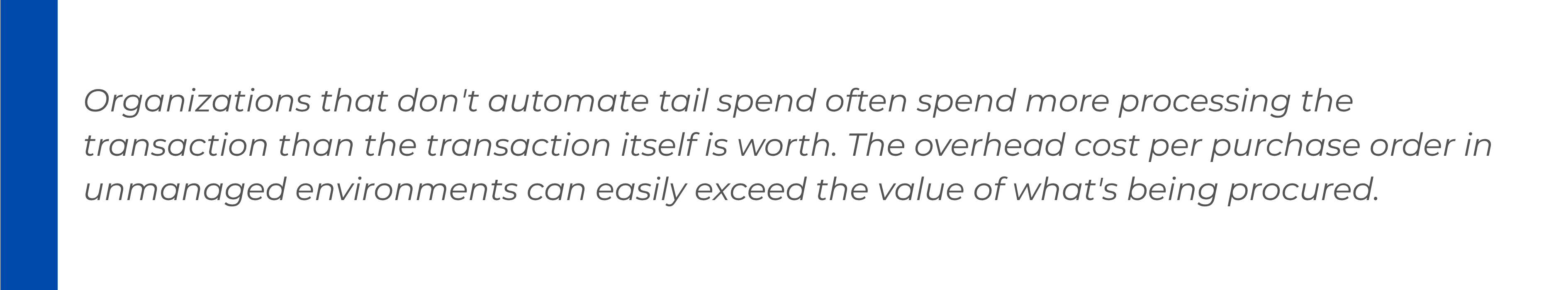 Every unautomated tail spend transaction is a missed data point. Over time, these gaps accumulate into a significant analytics blind spot. Procurement leaders trying to understand category performance, supplier dependency, or cost trends are working from incomplete data and making decisions accordingly.